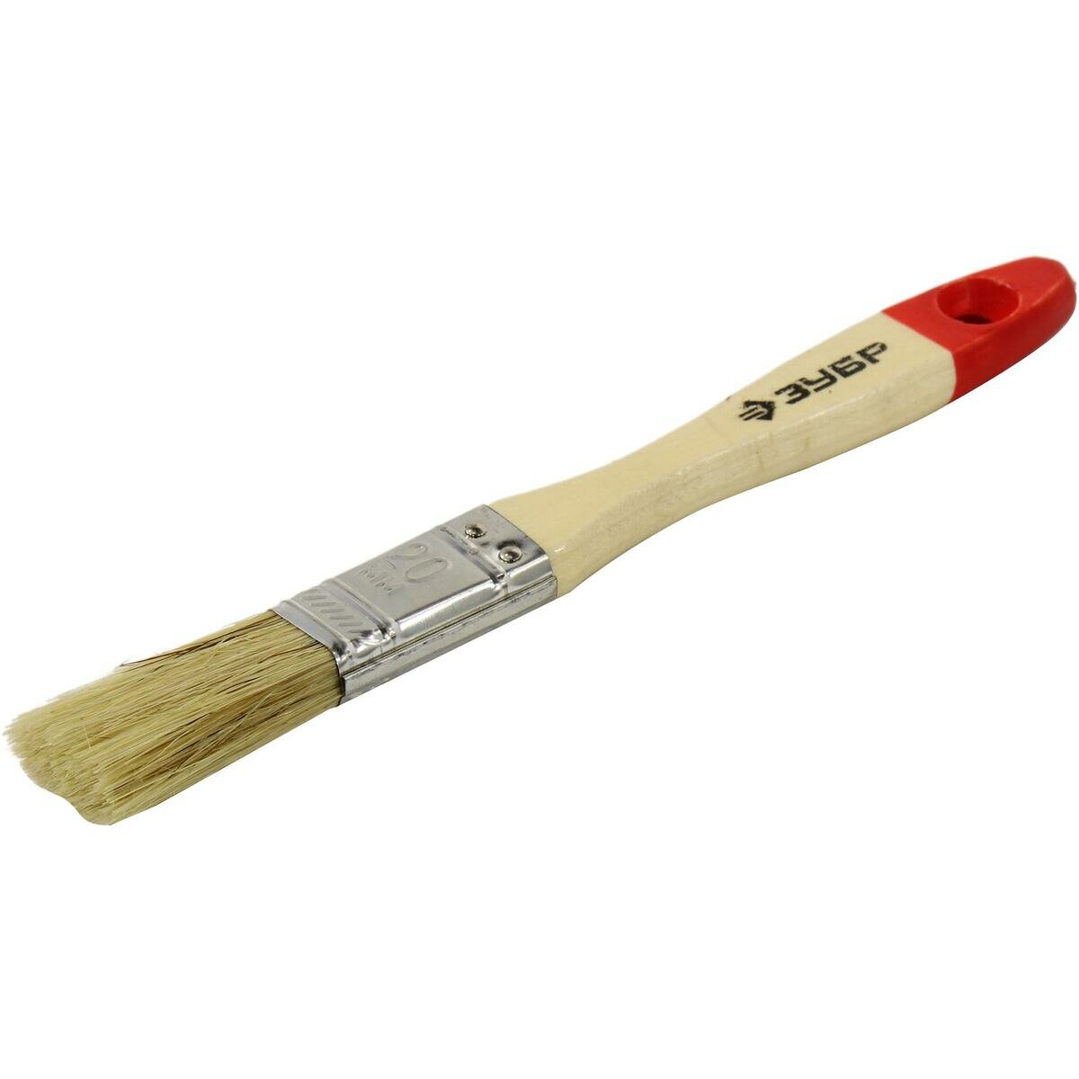 Малярная плоская кисть ЗУБР 20 мм 3/4'' натуральная светлая щетина деревянная ручка 4-01001-020