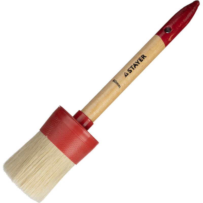 Круглая кисть STAYER 60 мм пластмассовый корпус светлая натуральная щетина деревянная ручка (0141-60)