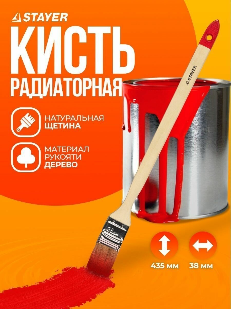 Купить Радиаторная кисть STAYER Universal 38 мм 1,5 светлая натуральная щетина деревянная ручка для всех видов ЛКМ (0112-38_z01)