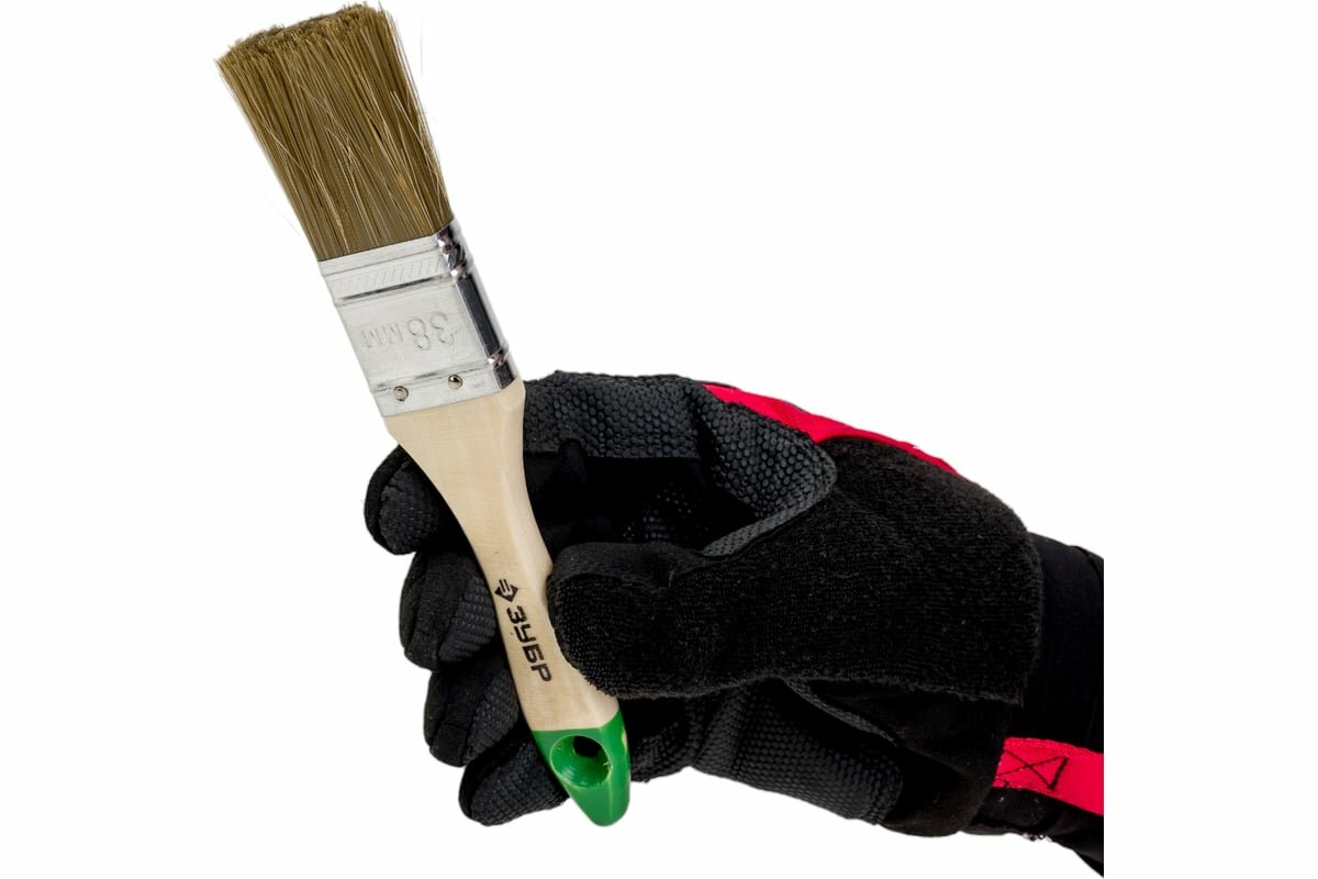 ЗУБР Лазурь 38 мм, 1,5 светлая смешанная щетина, деревянная ручка, Плоская кисть, мастер (4-01009-038)