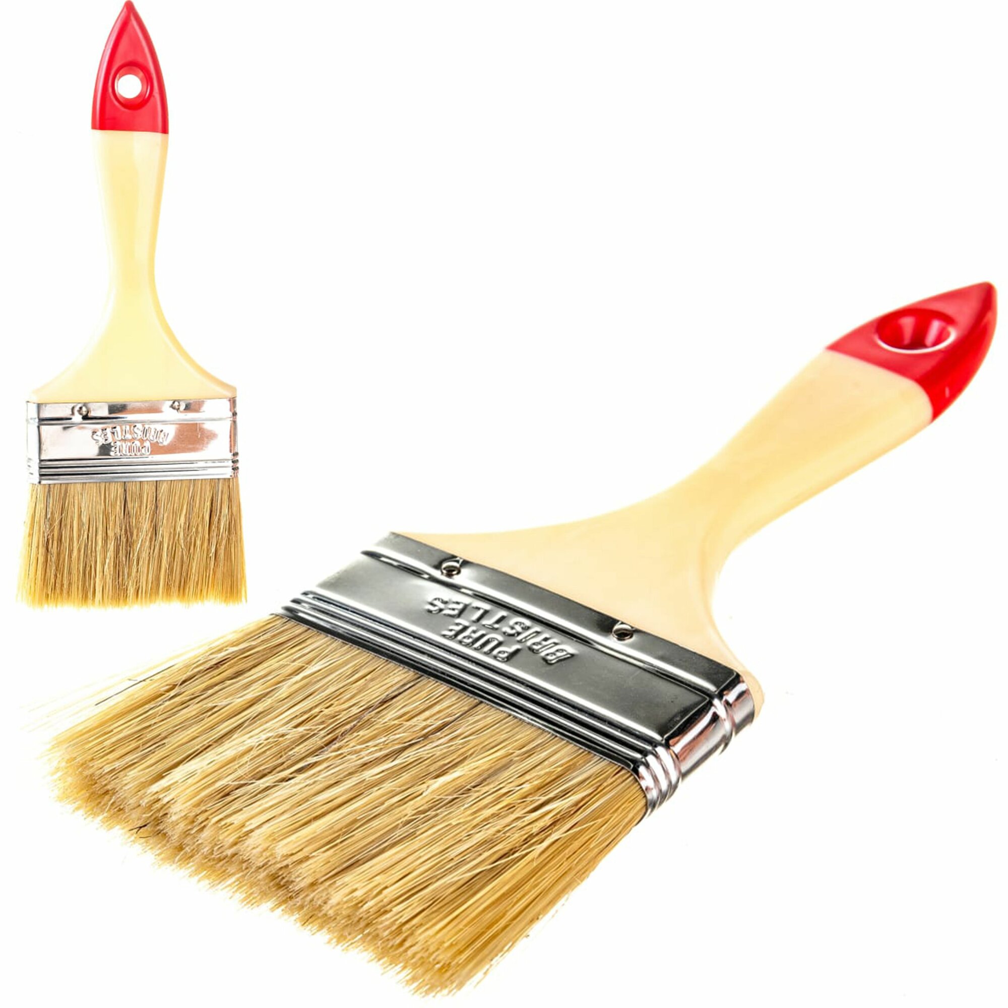 Кисти малярные флейцевые 4 шт, 70 мм, 50 мм, 35 мм, 25 мм, натуральная щетина / кисти плоские для краски