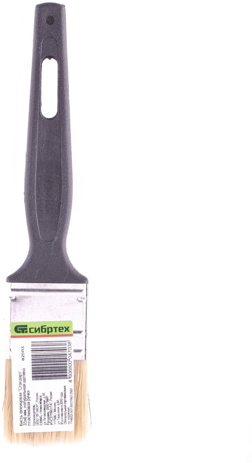 Кисть флейцевая "Стандарт", 35 х 6 мм, натуральная щетина, пластиковая ручка Сибртех (арт. 82503)