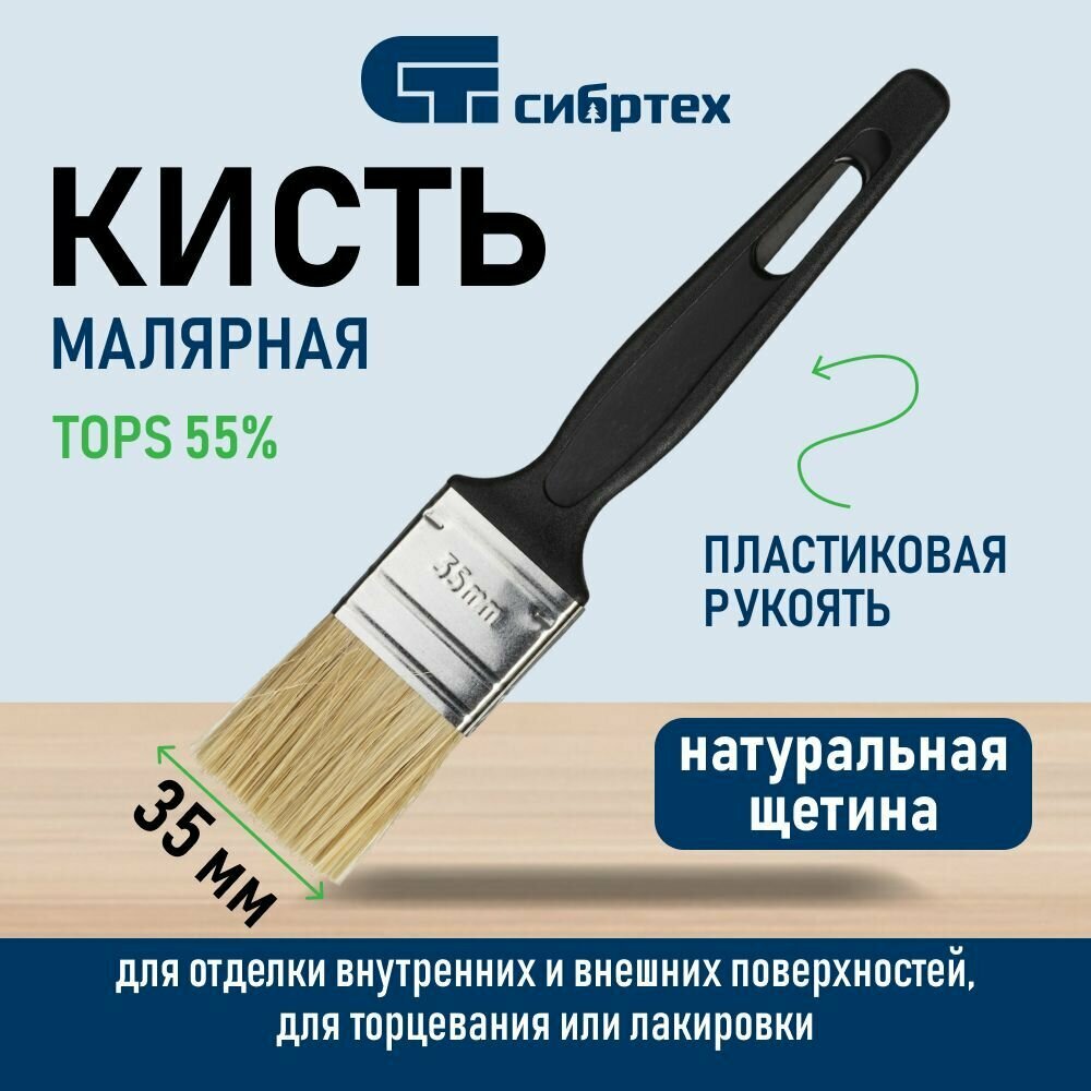 Кисть флейцевая Стандарт, 35x6, натуральная щетина,, пластиковая ручка СИБРТЕХ Сибртех 82503