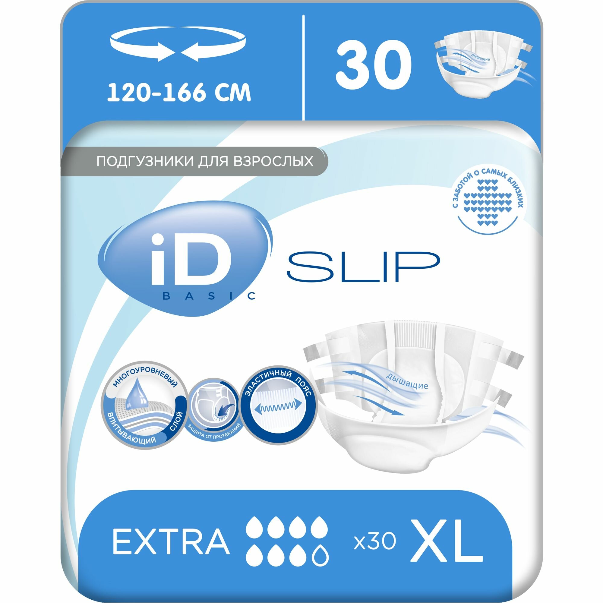 Подгузники для взрослых iD Slip Basic Extra Large, объем талии 120-166 см, 30 шт.