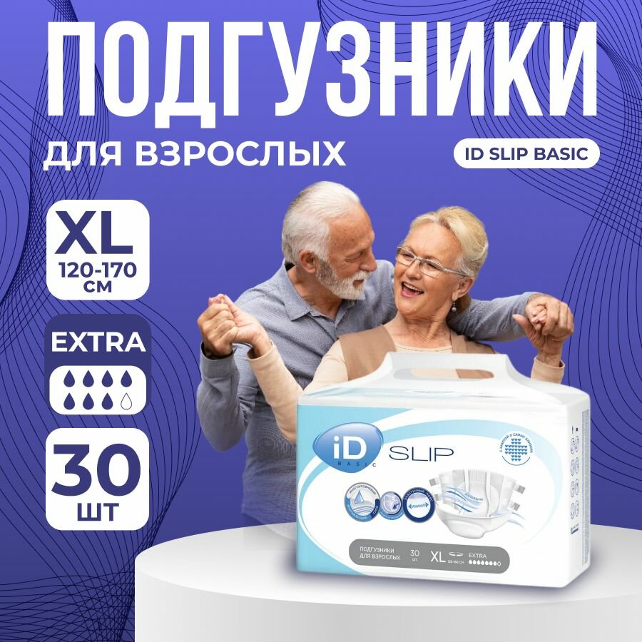 Подгузники для взрослых iD Slip Basic, XL, 7 капель, 120-170 см, 1 уп. по 30 шт.