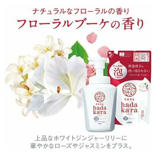 LION Мыло для тела Hadakara с цветочным ароматом, 500 мл.