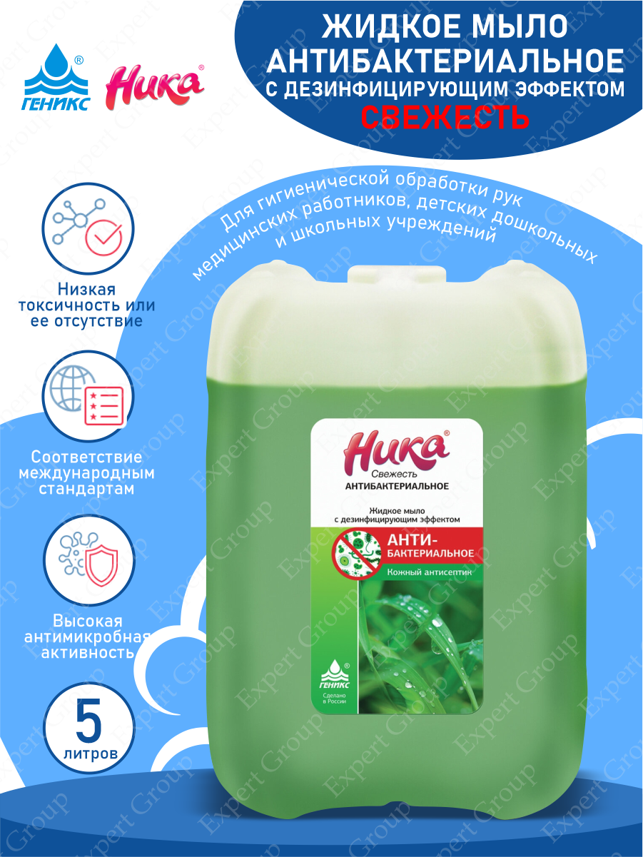 Мыло жидкое с дезинфицирующим эффектом "Ника-свежесть антибактериальное", канистра, 5 л Ника 1363361 .