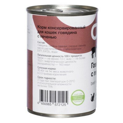 Консервы для кошек говядина с печенью 0,25 кг х 6 шт.