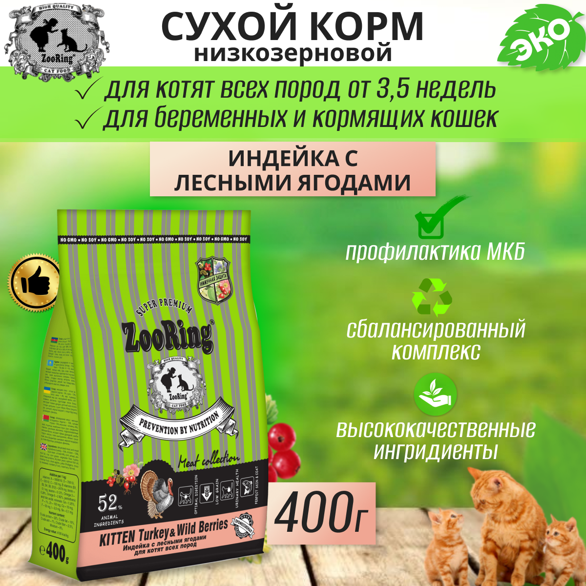 Купить Сухой корм ZooRing KITTEN индейка с лесными ягодами для котят, 400г