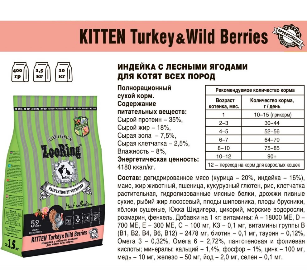 Zooring KITTEN TURKEY&Wild Berries 1,5 кг Индейка с лесными ягодами