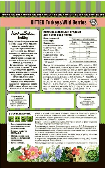 "Zooring Kitten Turkey & Wild Berries" - корм для котят с мясом индейки и дикими ягодами