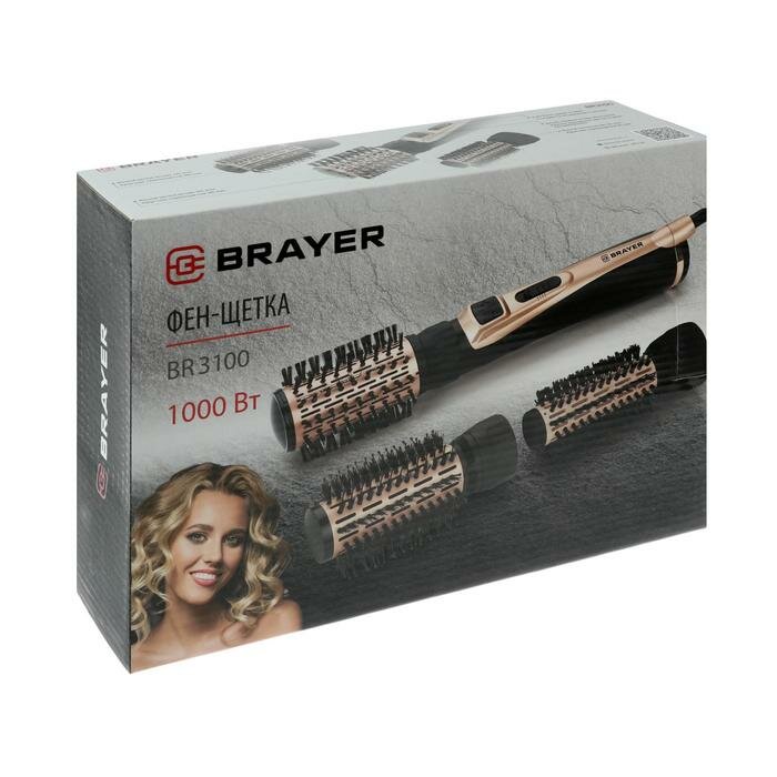Купить Фен -щетка BRAYER BR3100, 1000 Вт, 3 насадки: 35, 40, 50 мм, 2 скорости, шнур 1,8 м