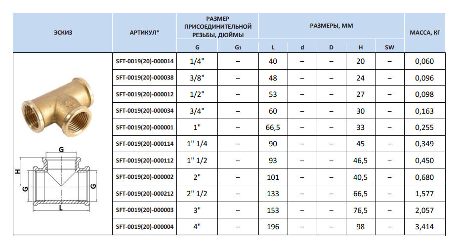 Фитинг резьба тройник STOUT SFT-0018-121212, ½"