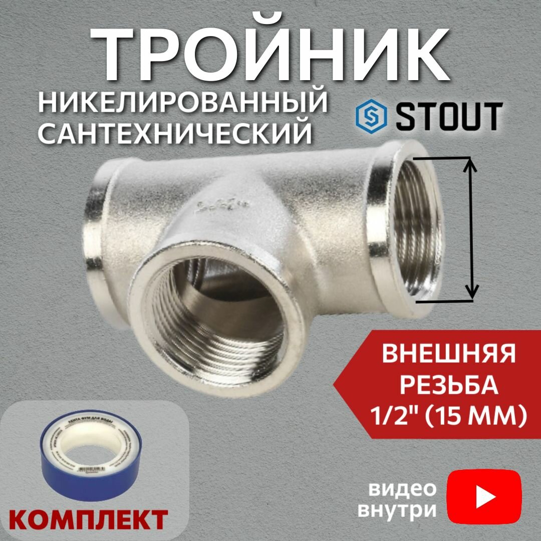 Тройник Stout SFT-0018-121212 НН никелированный 1/2X1/2X1/2