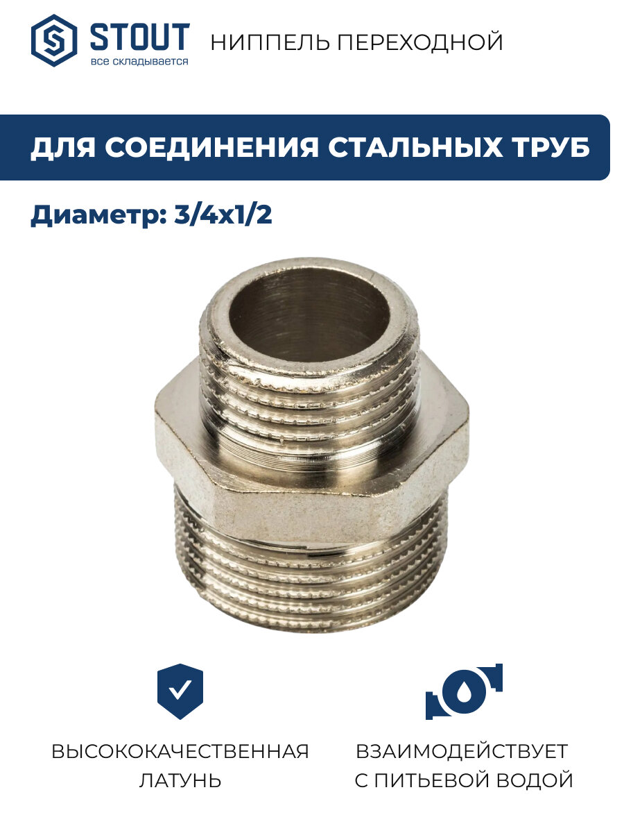 Переходной никелированный ниппель STOUT НН 3/4X1/2 SFT-0004-003412 RG008Q0OCNRMLV