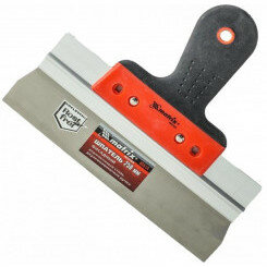 | Минусы: | Лезвие, это та стальная пластина закрепленная в аллюминиевом профиле не зепрессовано, а точечно заклепанно. Из-за этого при шпаклевании образуется волна/лесенка на шпаклевке. Убрать ее не возможно, т.к. лезвие шпателя постоянно вибрирует при протягивании рукой, что способствует ее появлению. Пробовал обстучать молотком аллюминиевый профиль, чтоб зажало лезвие, но эффект минимальный.