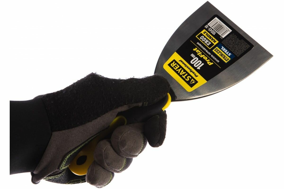 Шпатель с профилированным нержавеющим полотном и 2к ручкой 100мм STAYER PROFESSIONAL