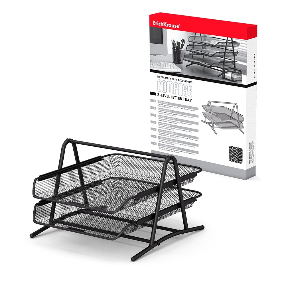 Купить Лоток для бумаг горизонтальный 2-х уровневый, ErichKrause Compass Classic, металлическая сетка, чёрн .