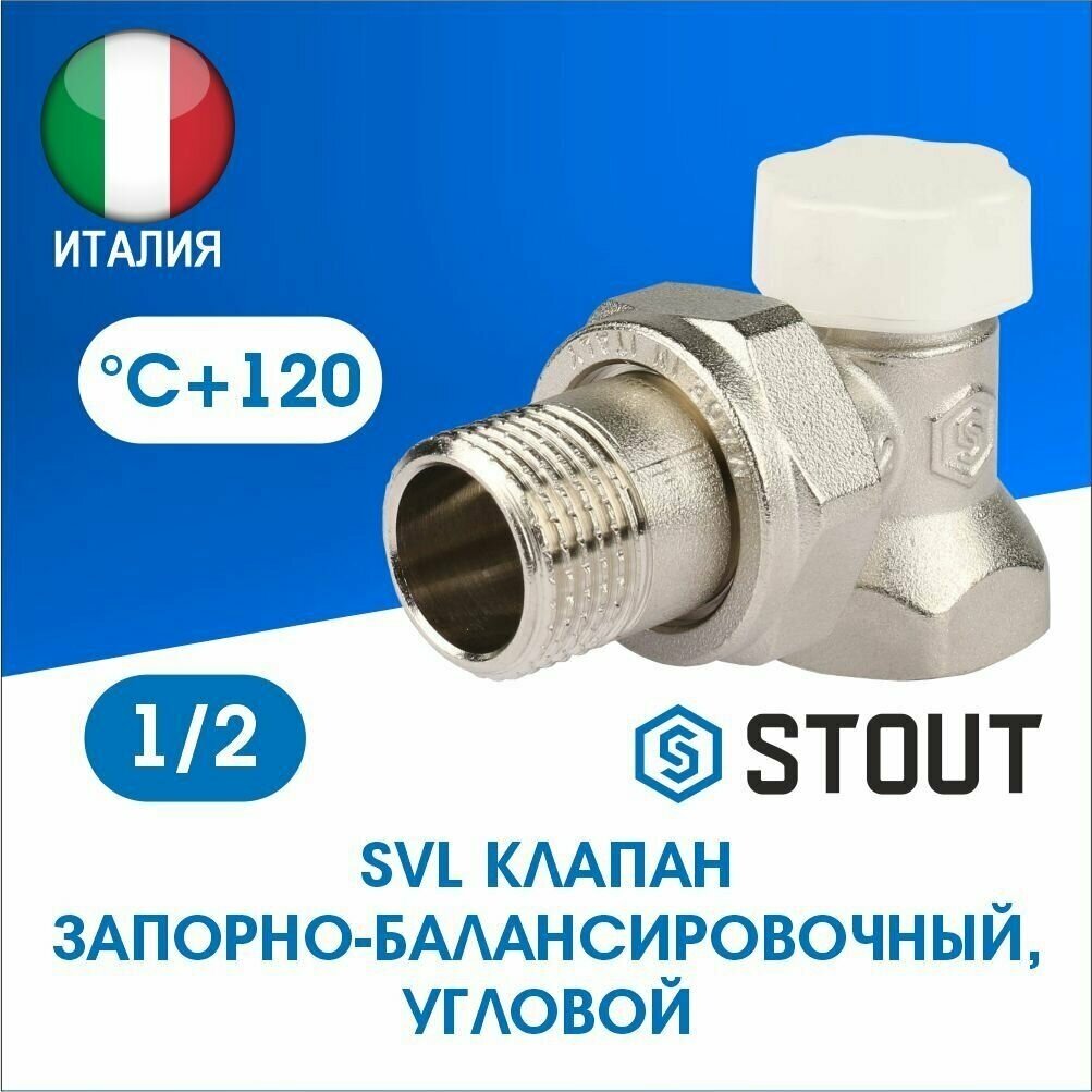 SVL-1156-000015 STOUT Клапан запорно-балансировочный, угловой 1/2"