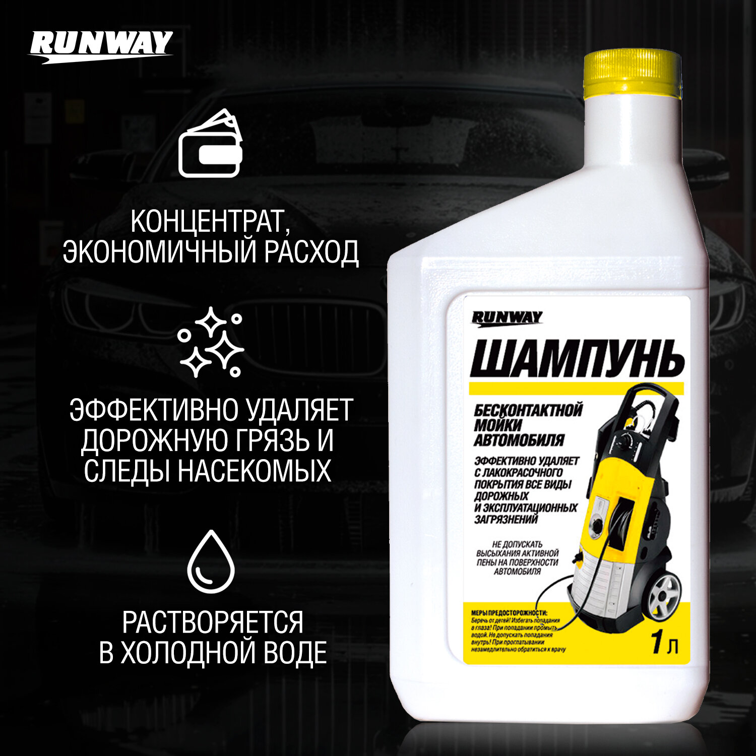 RUNWAY Шампунь для бесконтактной мойки автомобиля 1 л