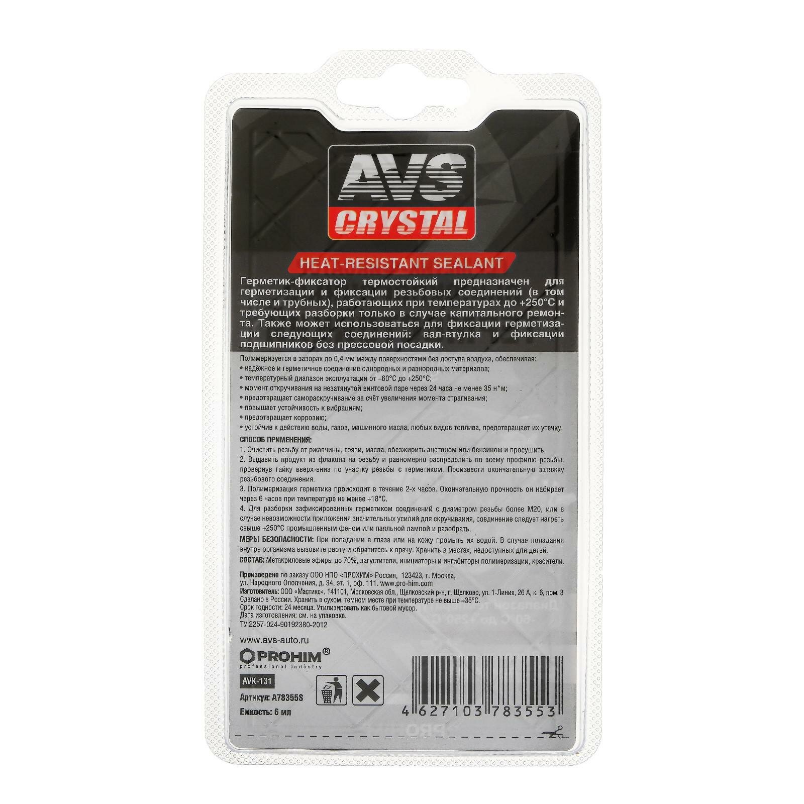 AVS Герметик-фиксатор AVS AVK-131, высокопрочный, термостойкий 6 мл