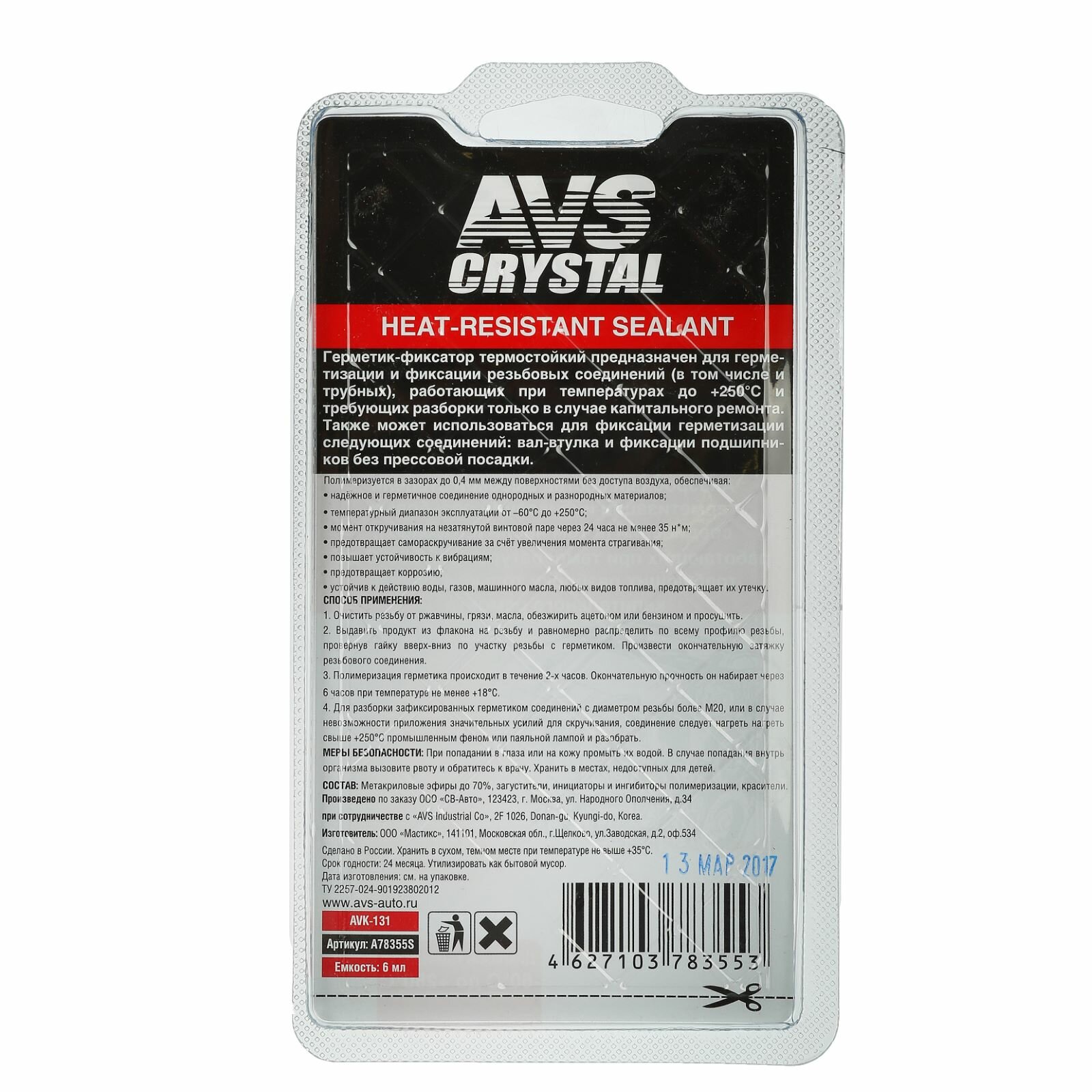 Герметик-фиксатор (анаэробный) высокотемпературный 6 мл AVS AVK-131