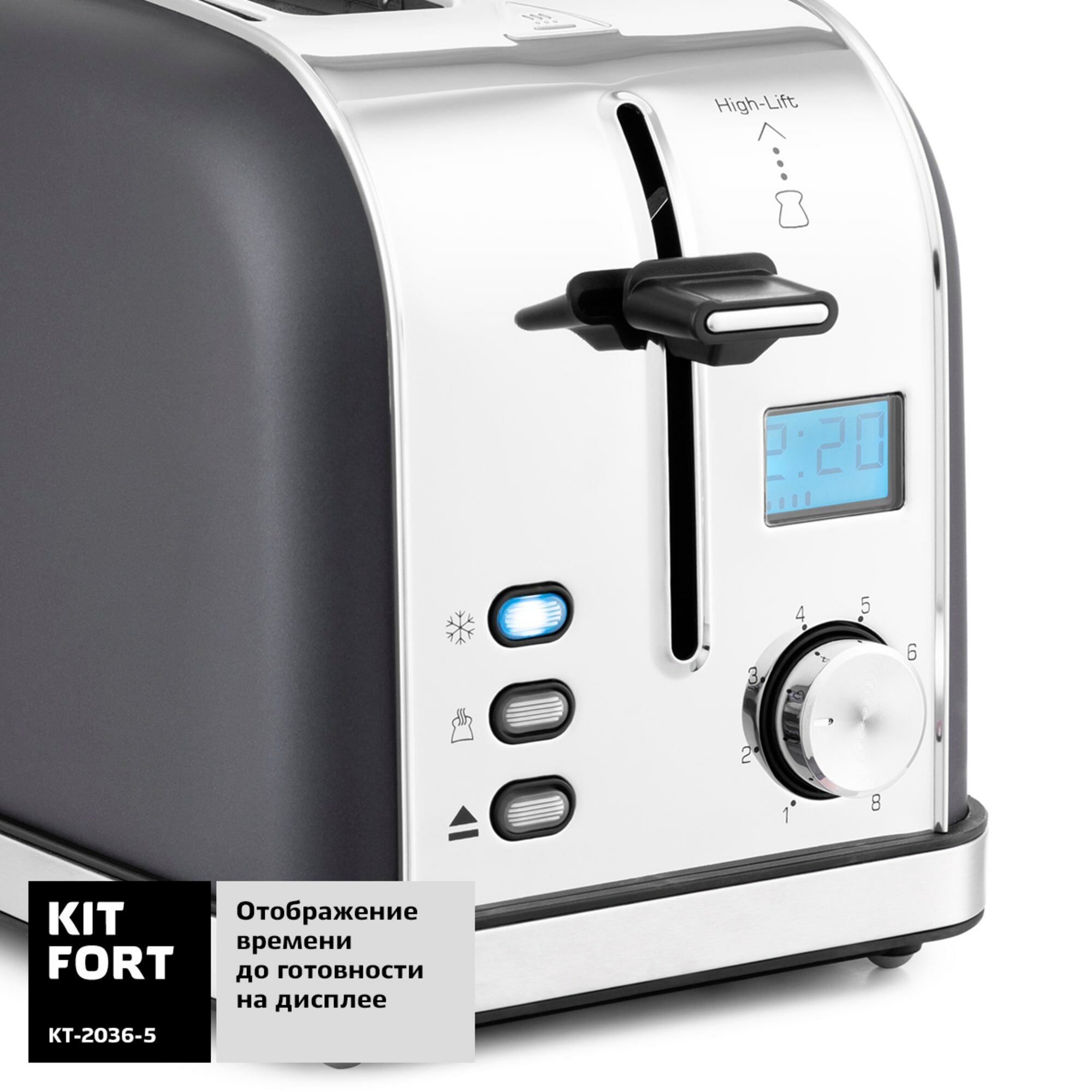 2036-6-КТ Тостер Kitfort Мощность: 800-950 Вт.Ёмкость: 2 тоста одновременно,серебристый.