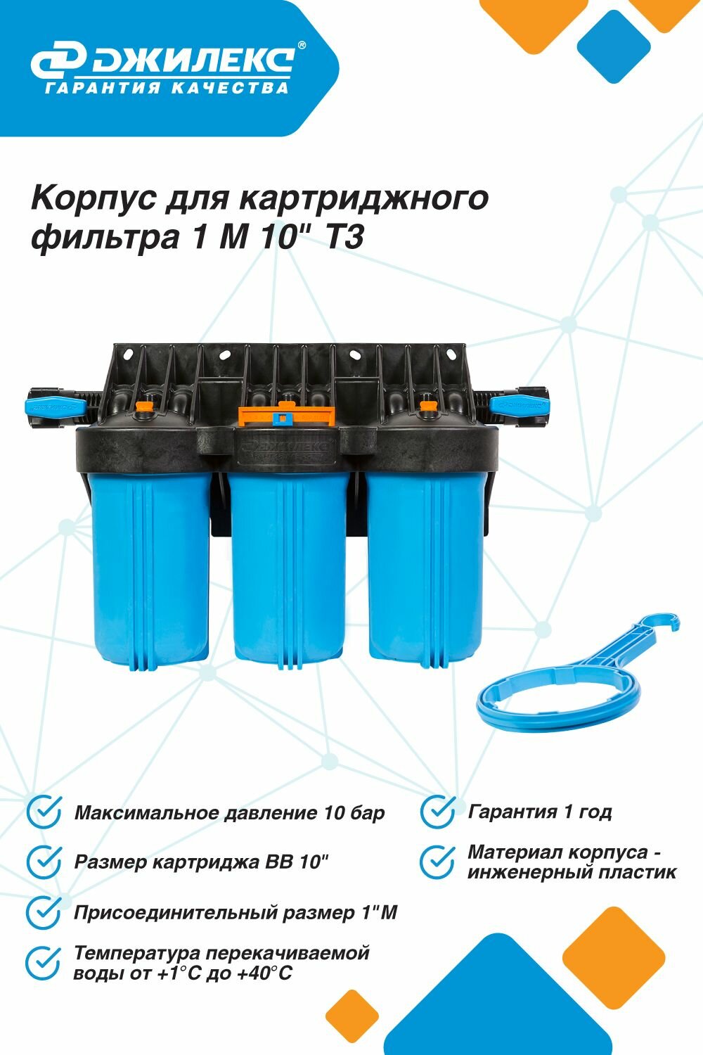 Фильтр магистральный ДЖИЛЕКС 1 М 10 Т3 синий/черный