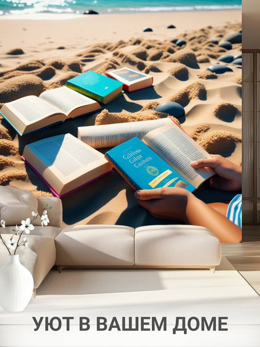 Фотообои моющиеся ударопрочные "Люди, отдыхающие на пляже с книгами" 200x300 см. флизелиновые на стену