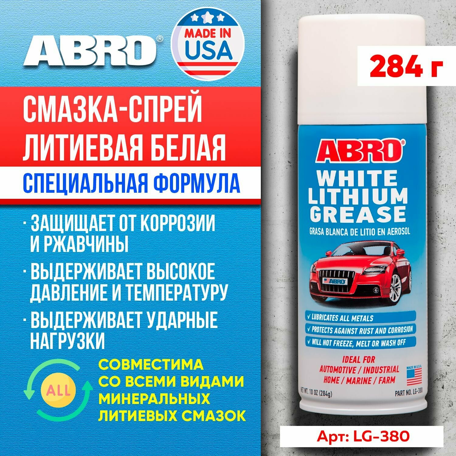 Lg-380_смазка! Литиевая Спрей 284г Abro ABRO арт. LG380