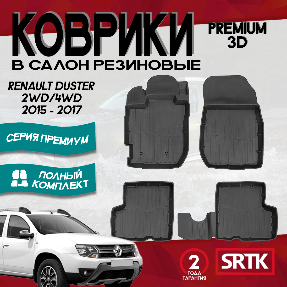 Купить Коврики резиновые Рено Дастер 2ВД/4 ВД (2015-2017)/Renault Duster 2WD/4WD (2015-2017) 3D Premium SRTK (Саранск) комплект в cалон