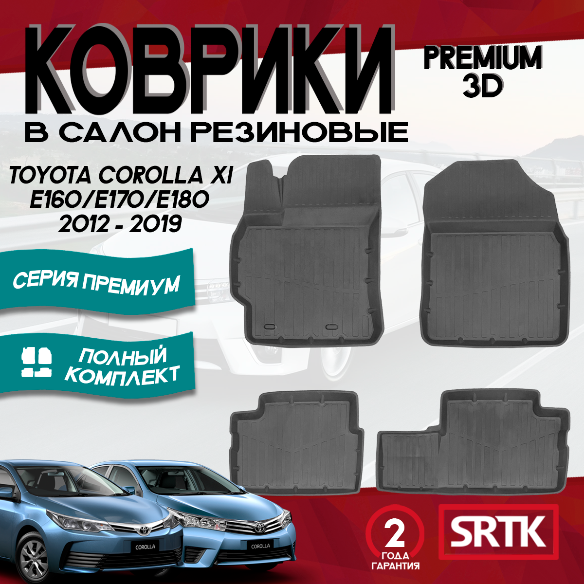 Коврики резиновые в салон для Тойота Королла 11/Toyota Corolla XI (2013-2019) 3D PREMIUM SRTK (Саранск) комплект в салон