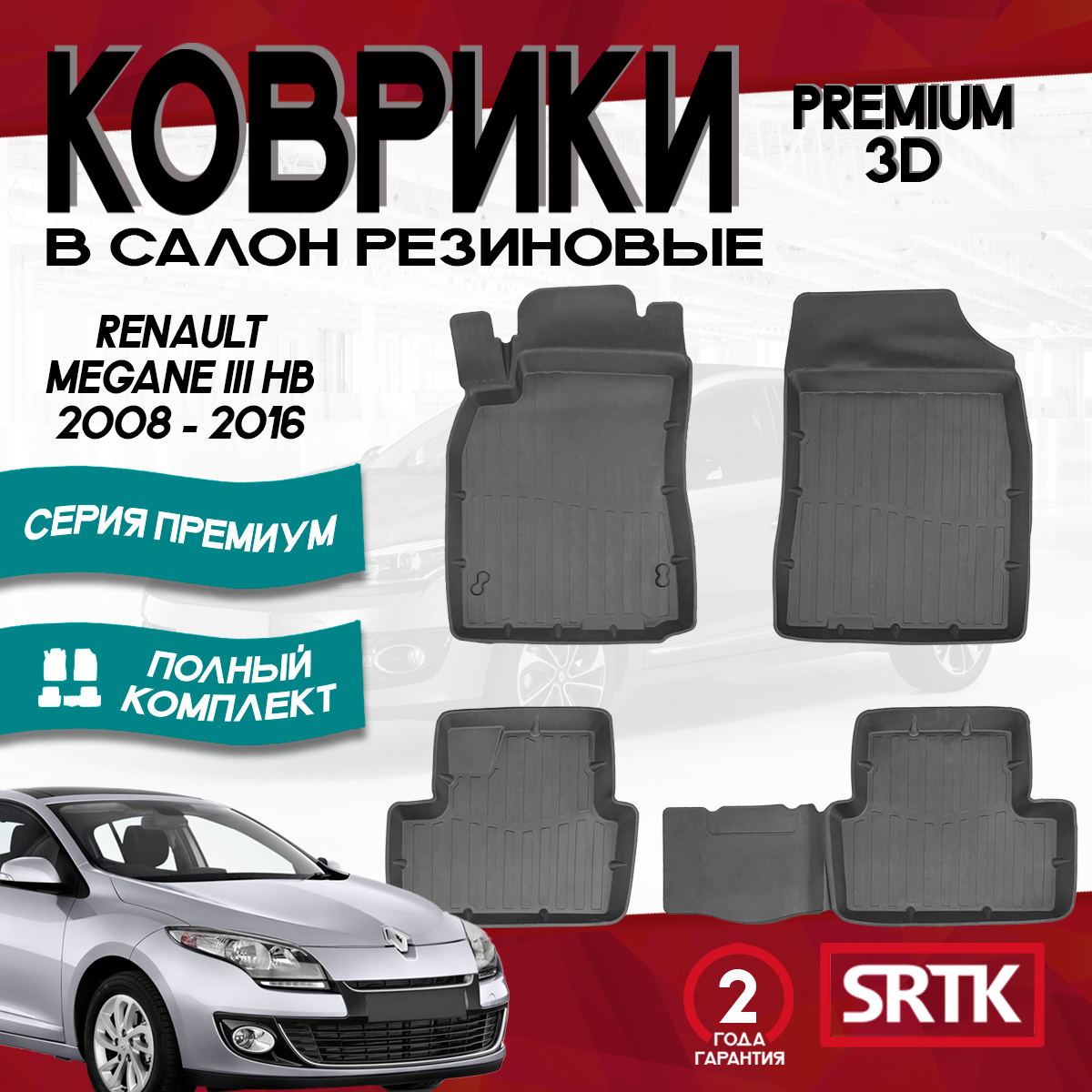 Купить Коврики резиновые для Рено Меган 3 (2008-2016)/Megane III (2008-2016) 3D PREMIUM SRTK (Саранск) комплект в салон
