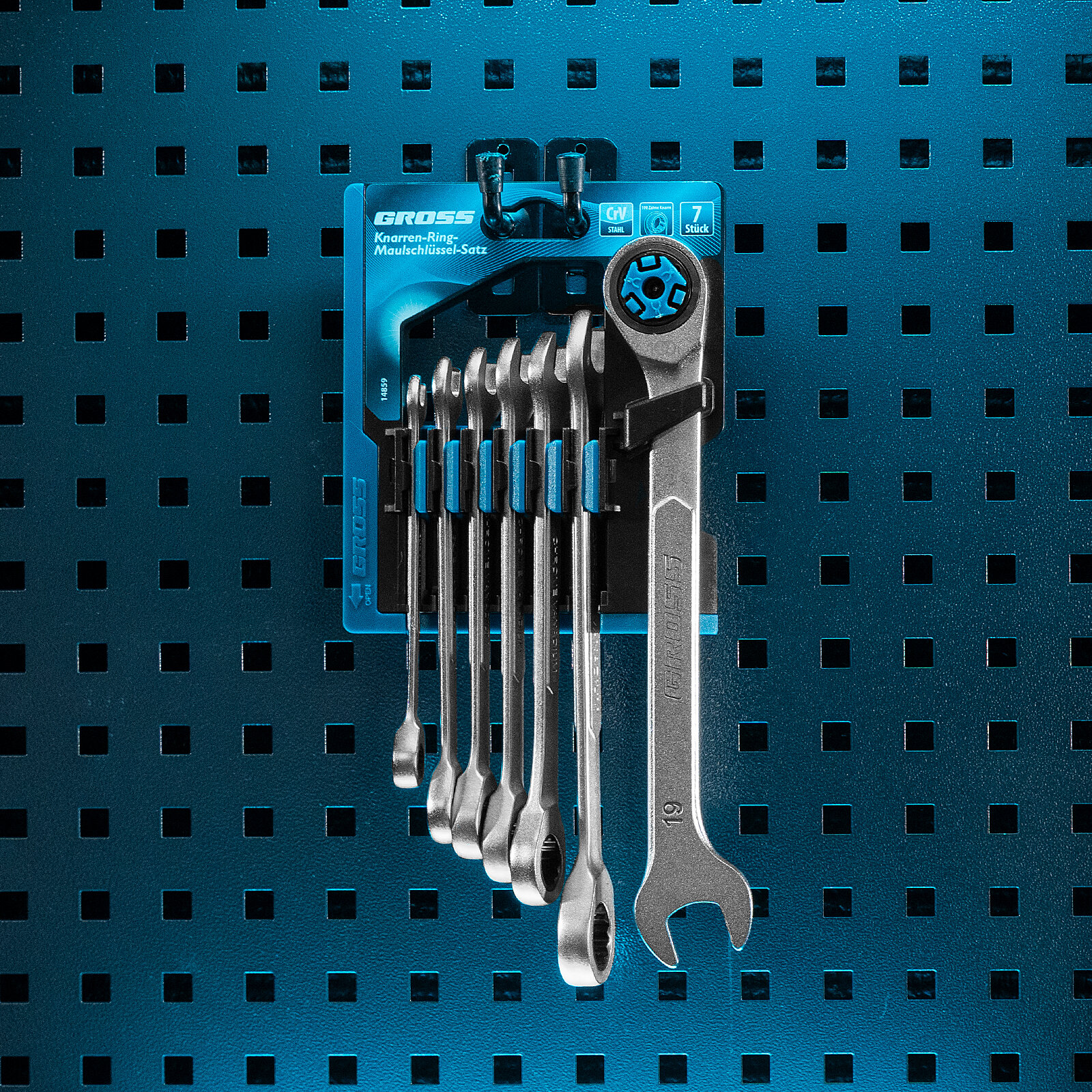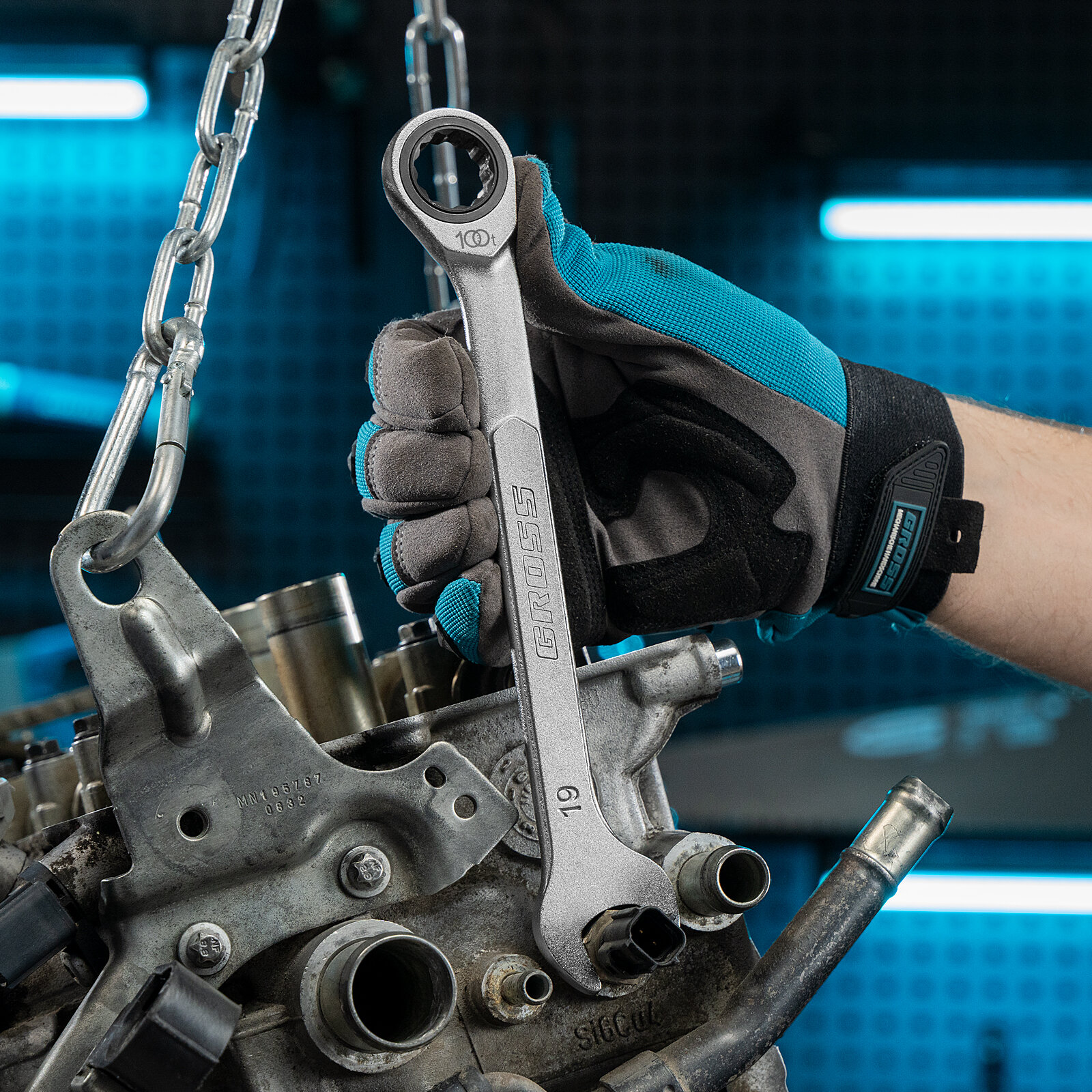Набор ключей комбинированных Gross 14859, трещоточных, CrV, 8-19 мм, 7 шт. Gross