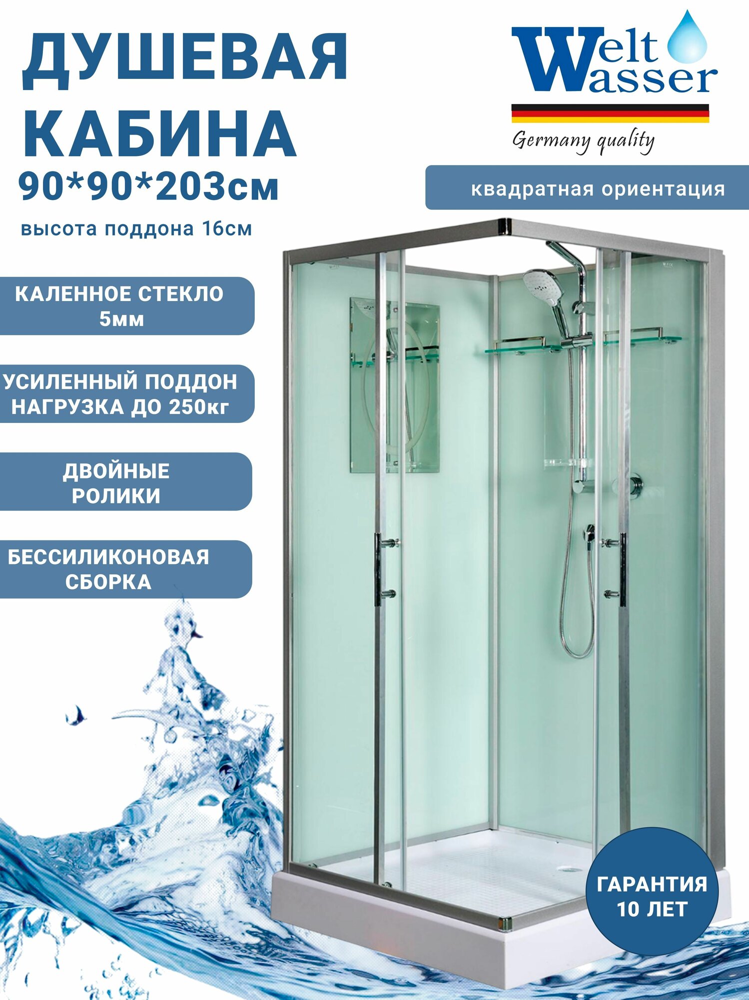 Купить Душевая кабина WeltWasser LAINE 901 90x90 см, низкий поддон, прозрачные стекла, без крыши