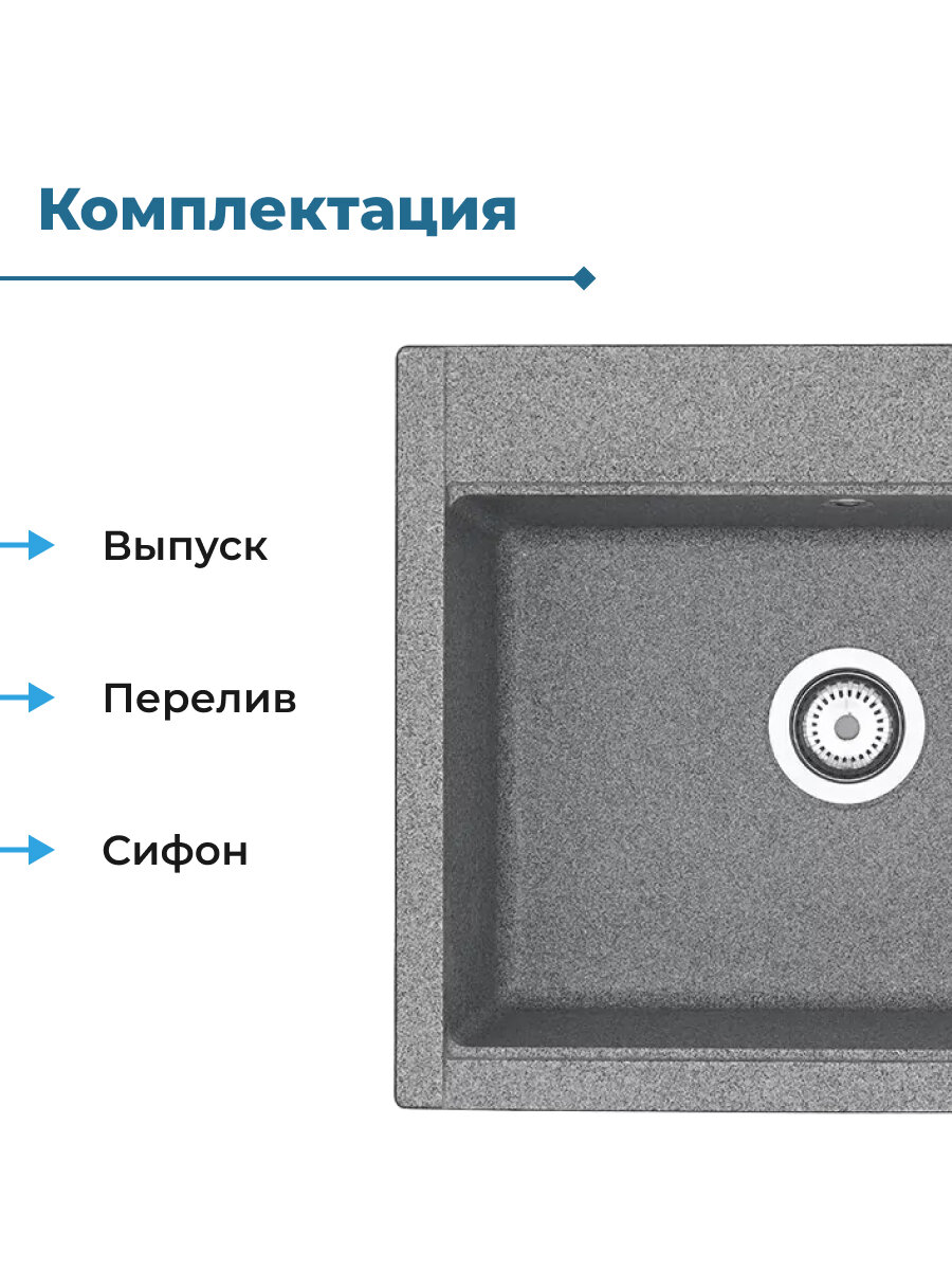 Кухонная мойка AQUATON Делия 59.4х51х21.8 литьевой мрамор, цвет Графит (1A715232LD210)