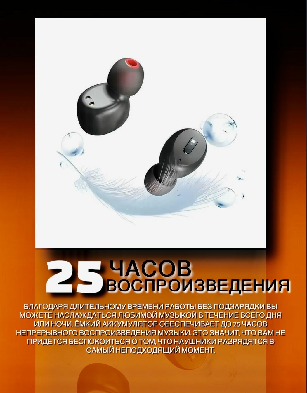 | Отзыв: | Использую их уже пару месяцев, звук просто супер. Корпус полностью герметичный, с наушниками даже можно плавать в боссейне. Если использовать зарядный чехол наушники работают не меньше 25 часов, это хороший показатель! |