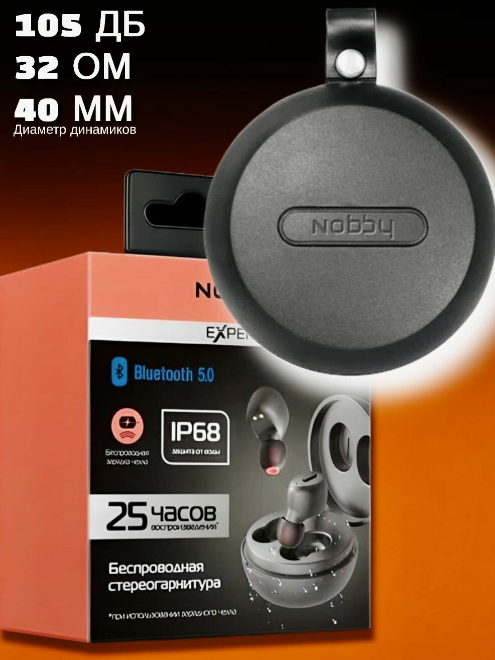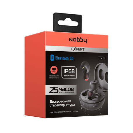 Беспроводные наушники Nobby Expert T-111, Nbe-bh-50-07, BT 5.0, пластик, черный