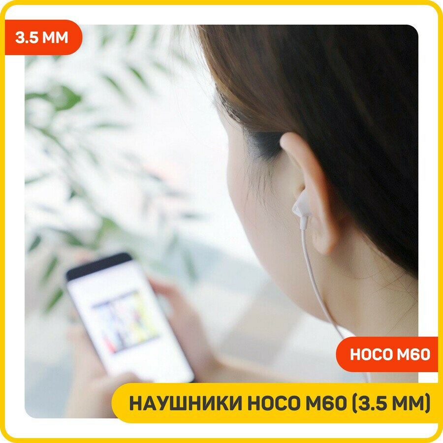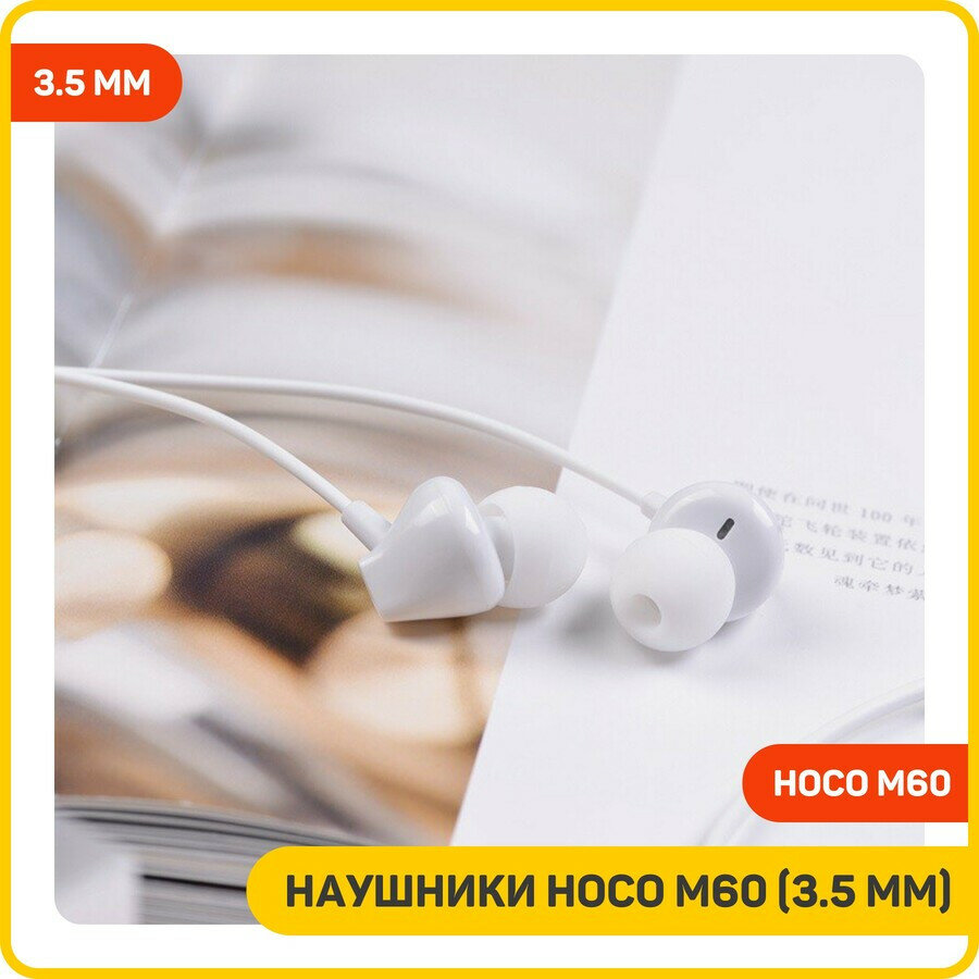 Наушники Hoco M60, проводные, вакуумные, микрофон, Jack 3.5 мм, 1.2 м, белые