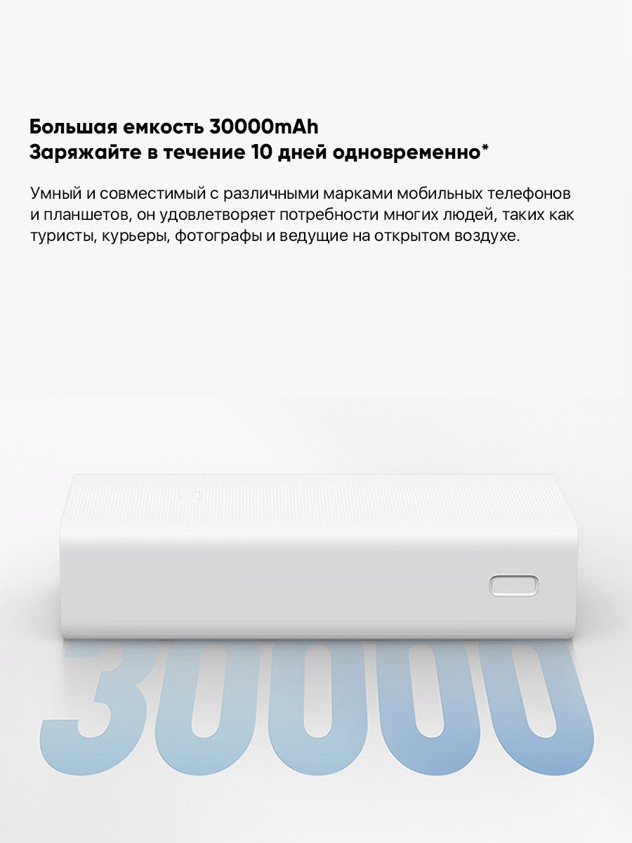 Купить Xiaomi Mi Power Bank 3 - Мощный и надежный внешний аккумулятор на 30000mAh (белый)