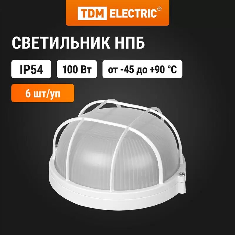 Светильник НПБ1102 белый/круг с реш. 100Вт IP54, TDM SQ0303-0026 (6 шт.)