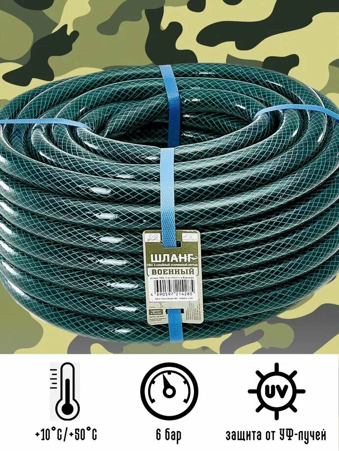 Гидроагрегат Шланг поливочный Д=3/4" (25м) арм., 3-х слойный Военный