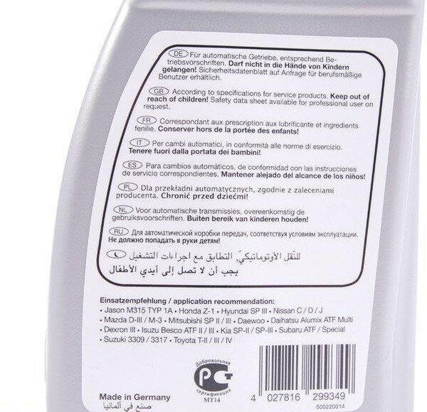 Масло трансмиссионное для акпп гидравлическое (1л)