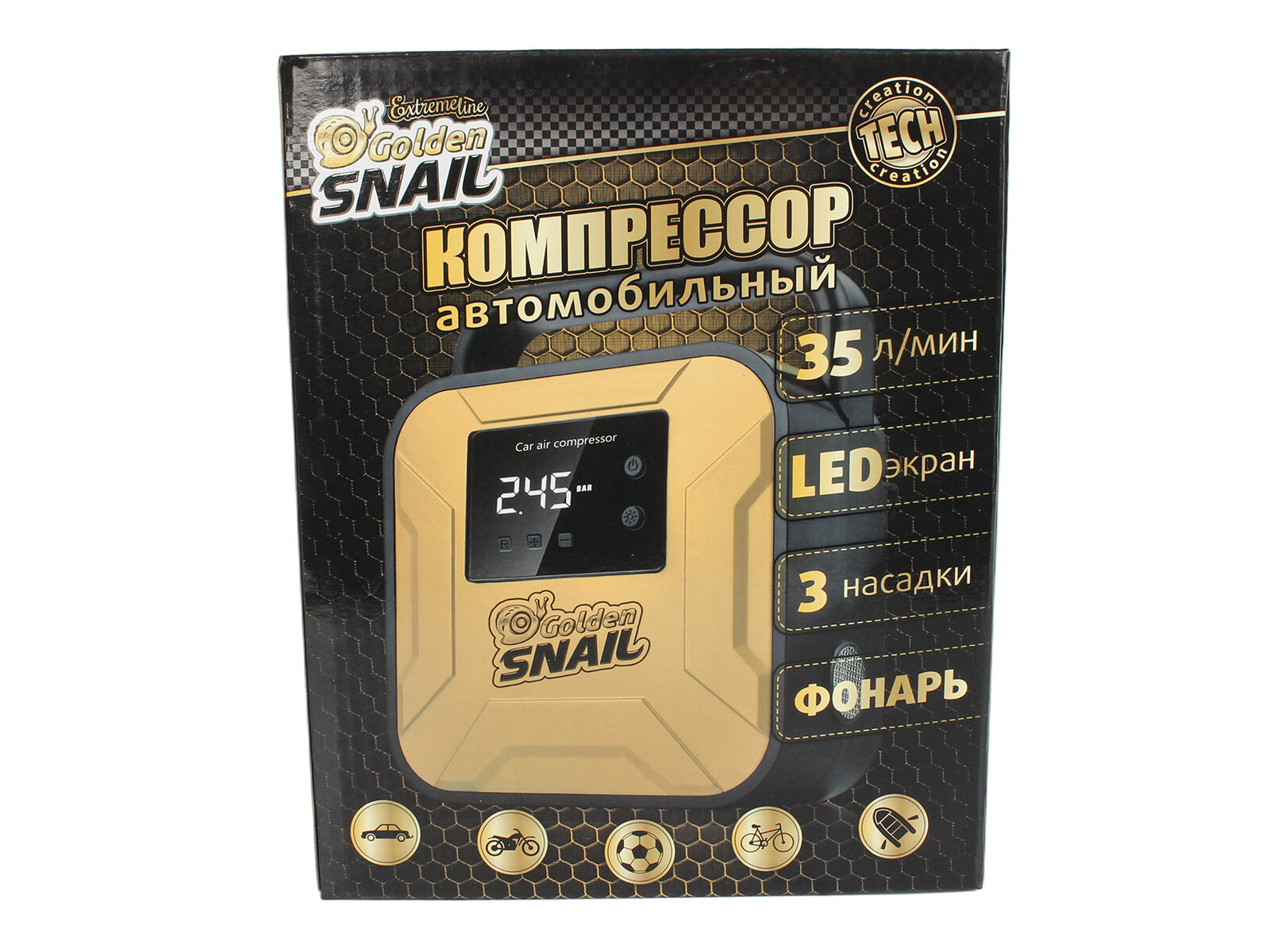 Компрессор автомобильный с фонарем и дисплеем Golden Snail. 35 л