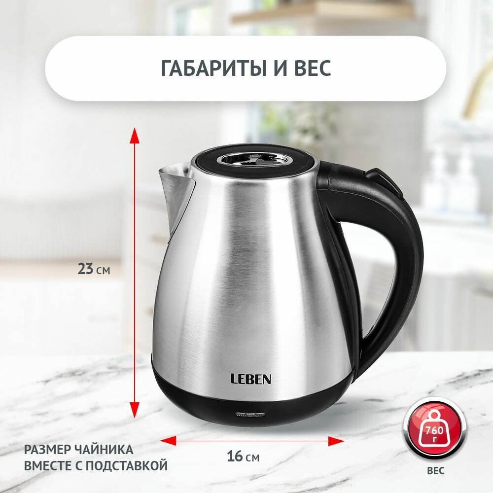 Чайник электрический LEBEN из нержавеющей стали,1,7 л, 1850 Вт