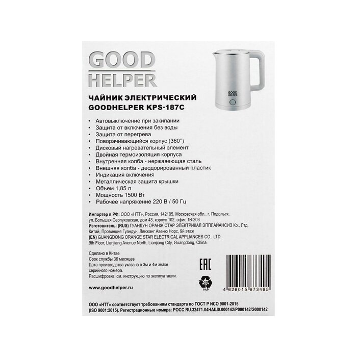 Чайник GOODHELPER KPS 189 C 4626015671910