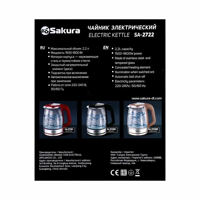 Чайник Sakura Sa-2722bk .