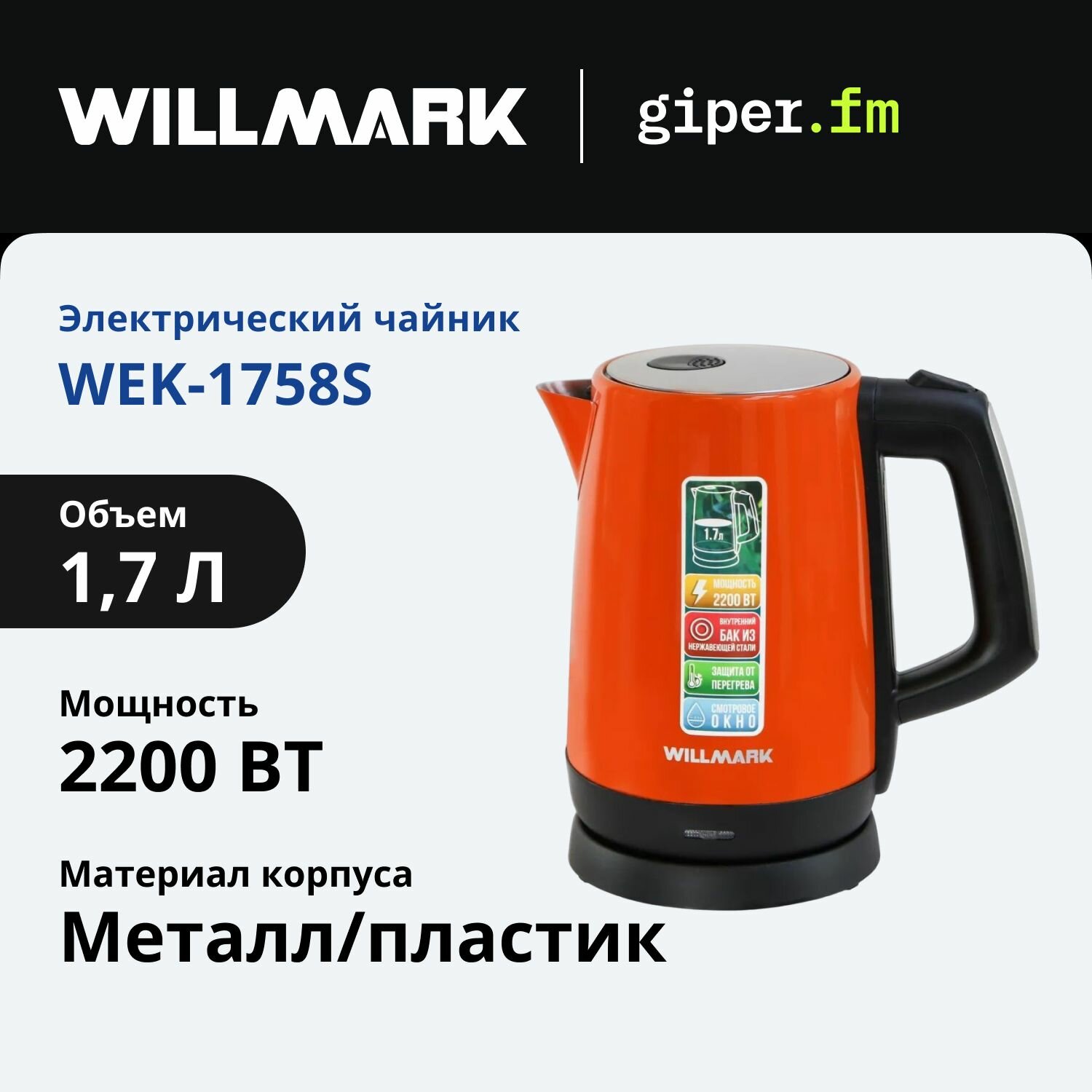 Купить Чайник электрический WILLMARK WEK-1758S 1.7 л, 2.2 кВт, оранжевый
