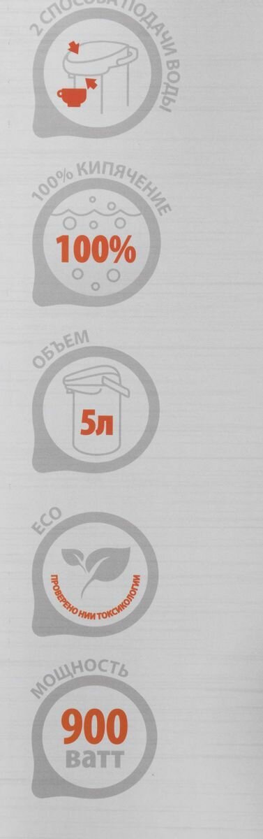 | Отзыв: | Чайник просто замечательный. Красивый, вместительный(5л), за демократичную цену. Покупали детям в школу для чаепитий. Греет до кипения около 35минут, затем переходит в режим ожидания. Есть кнопка подогрева и автоматической подачи воды. При первых двух кипячениях немного ощущался запах, затем он исчез. Очень рекомендую к покупке. |