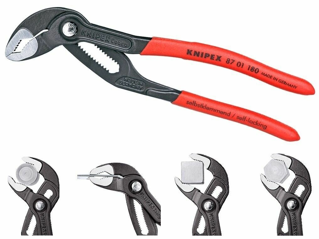 Ниже Вы можете прочитать отзывы на Клещи переставные KNIPEX "COBRA" 8701180 180 мм [KN-8701180], ознакомится с подробными характеристиками, посмотреть интересные обзоры и фотографии на Клещи переставные KNIPEX "COBRA" 8701180 180 мм [KN-8701180].